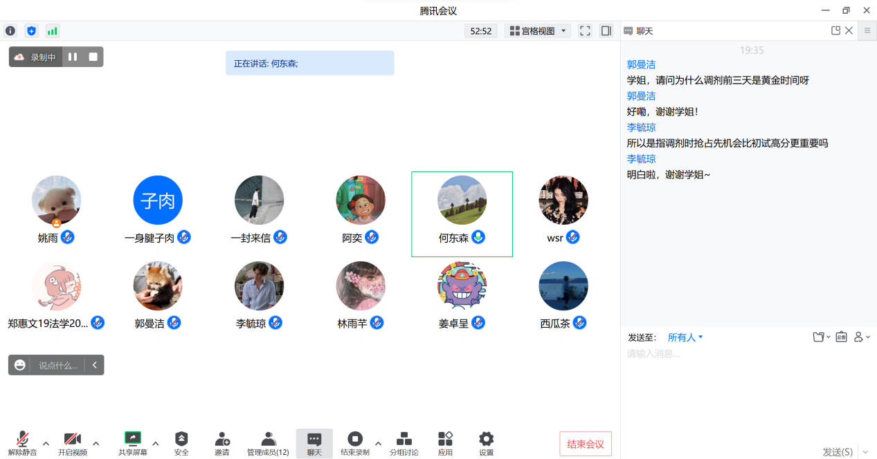 在最后的答疑环节,林雨芊和何东森根据同学们的问题在调剂时机、复试参考书等方面进行了详细的解答,帮助同学们对考研复试以及调剂都有了更多的了解和把握。
